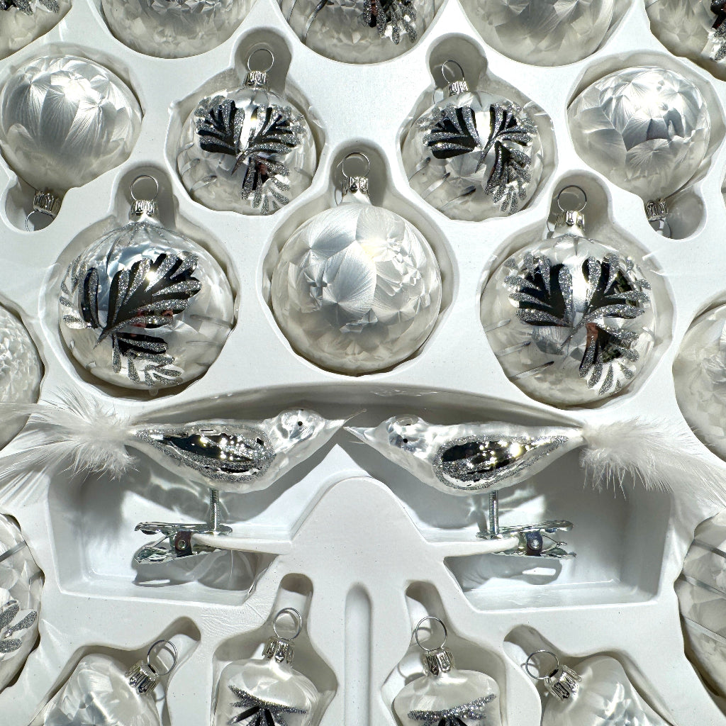 Sortiment Winterzeit Silber Weiß Gefrostet 39-tlg.