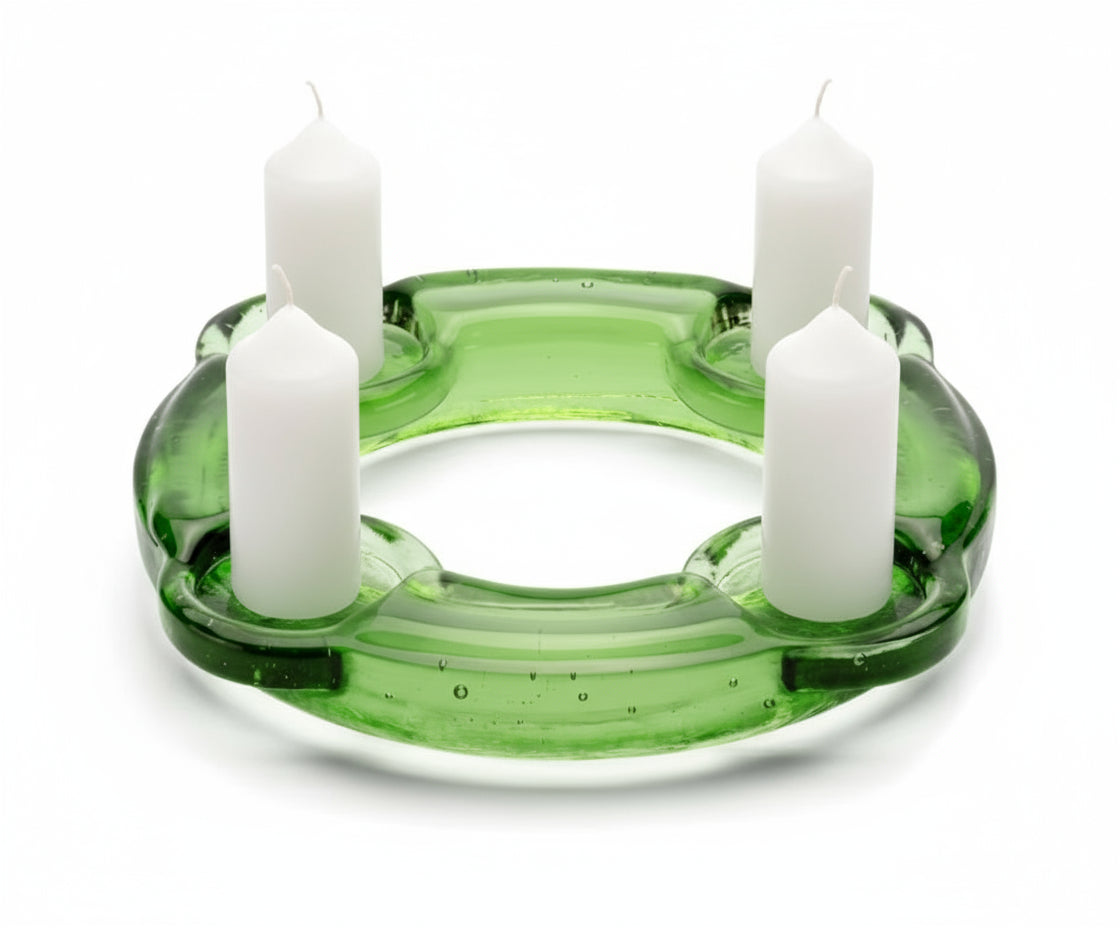 Markant, minimalistisch, manuell gefertigt und in Form gegossen. Der Kranz aus Original Thüringer Waldglas ist das Pendant zum klassischen Adventskranz. Der Kerzenschein spiegelt sich im Waldglas wieder und sorgt für eine gemütliche Stimmung.